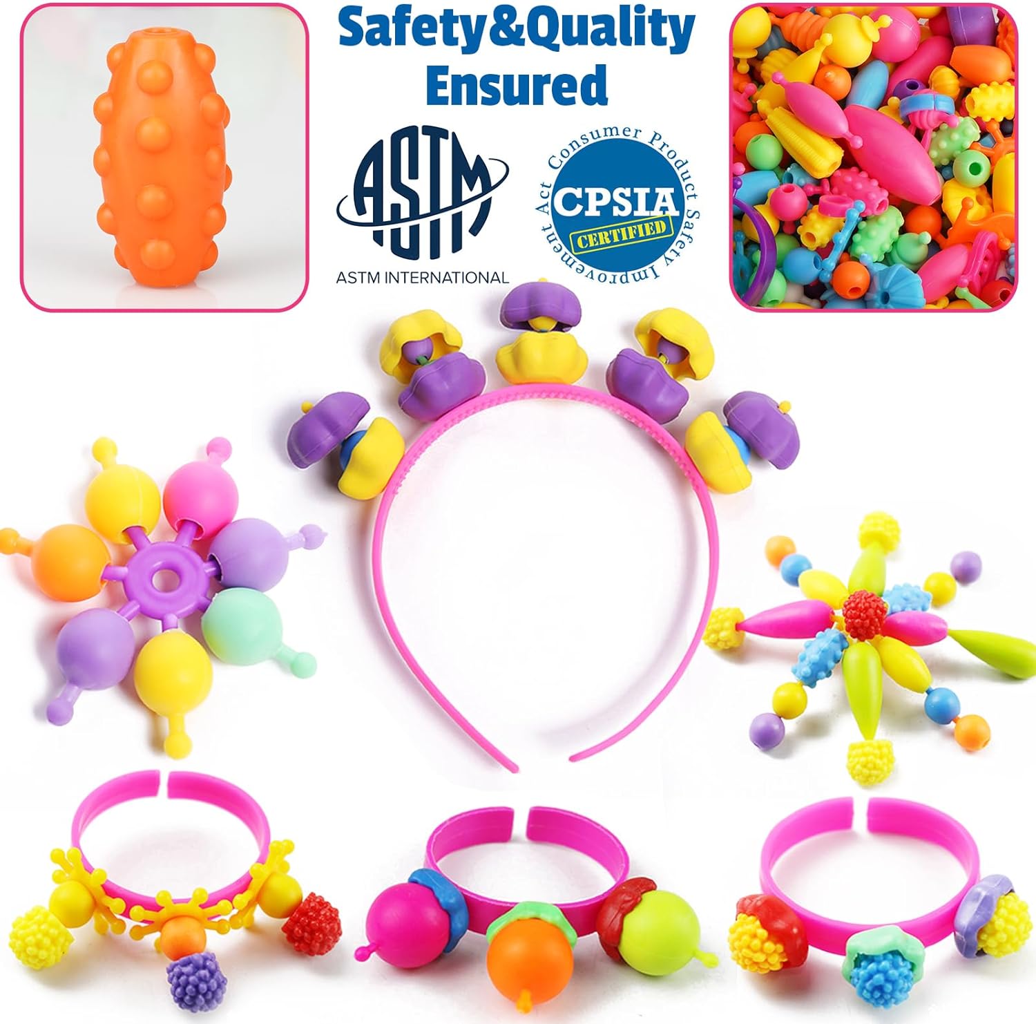 đˇăDevelop Fine Motor & Exercise Finger Flexibility and Hand Strengthă Pop beads are great for strengthening hand and finger muscles for kids. The motion of assembling and disassembling the beads enhances finger flexibility and hand-eye coordination. Each jewelry making beads is easy enough for kids age 3 4 5 6 7 8 to connect and take apart by herself with no help and avoid getting frustrated.